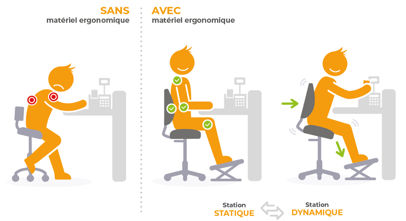 Neudobnim držam se lahko izognemo z vgradnjo ergonomskega materiala. Ko gre za skupne postaje, se mora ta oprema prilagoditi več morfologijam in uporabam (število nastavitev, amplitude, personalizacija), hkrati pa mora biti enostavno nastavljiva.